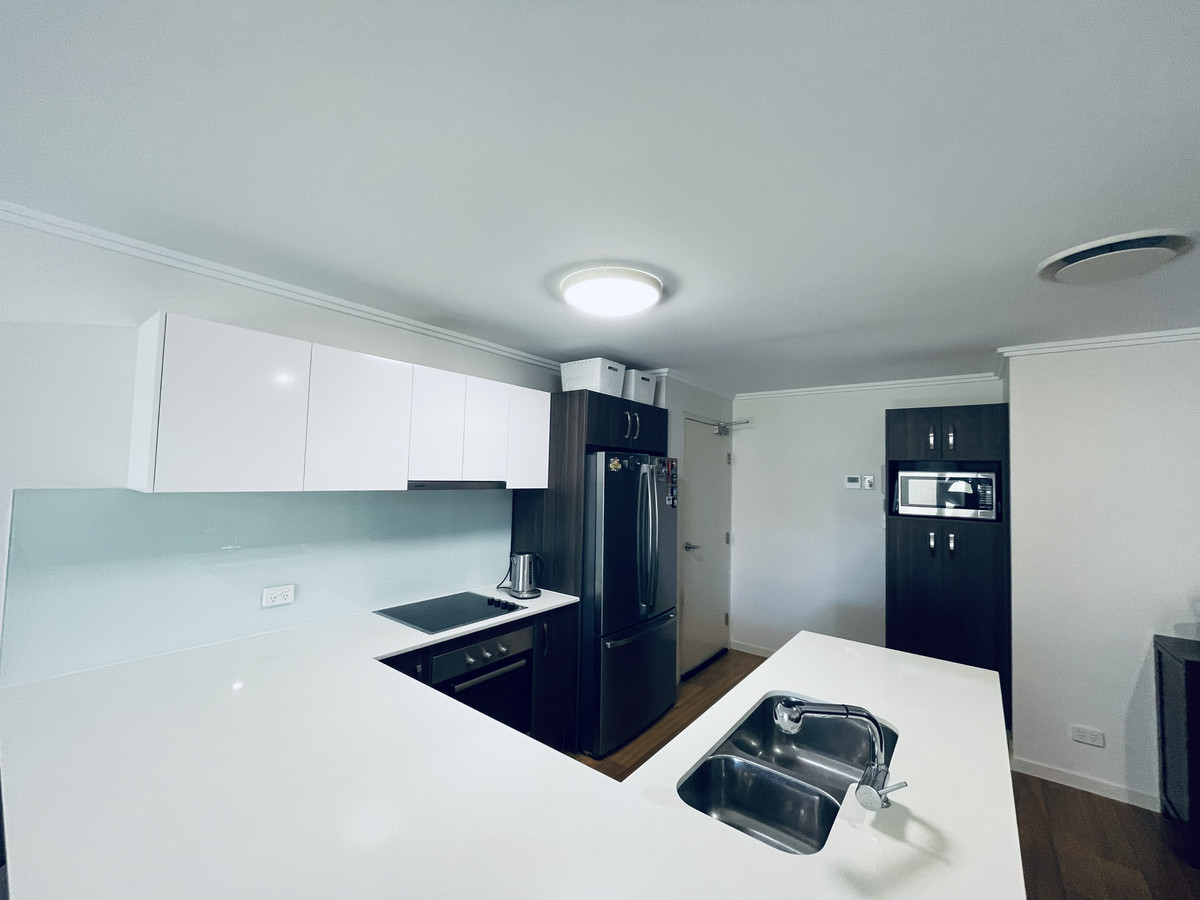 At the heart of the home is a modern kitchen featuring sleek stone benchtops, a dishwasher, and an electric oven and cooktop, making everyday cooking and entertaining a pleasure. The kitchen flows seamlessly into the open-plan living and dining area, a welcoming space designed for both relaxation and entertaining. With ample power points, a remote-controlled ceiling fan, and a screened sliding door, this area opens effortlessly to a private outdoor space, creating an easy indoor-outdoor connection.