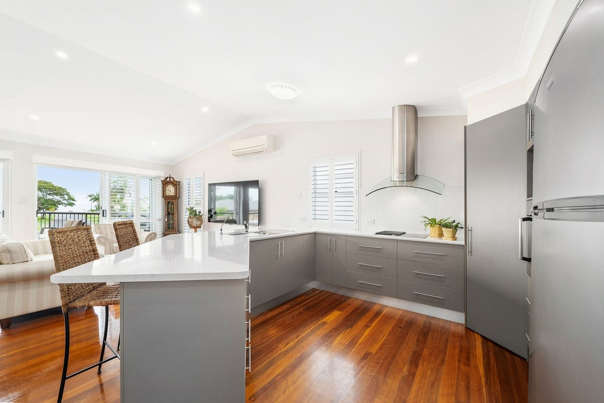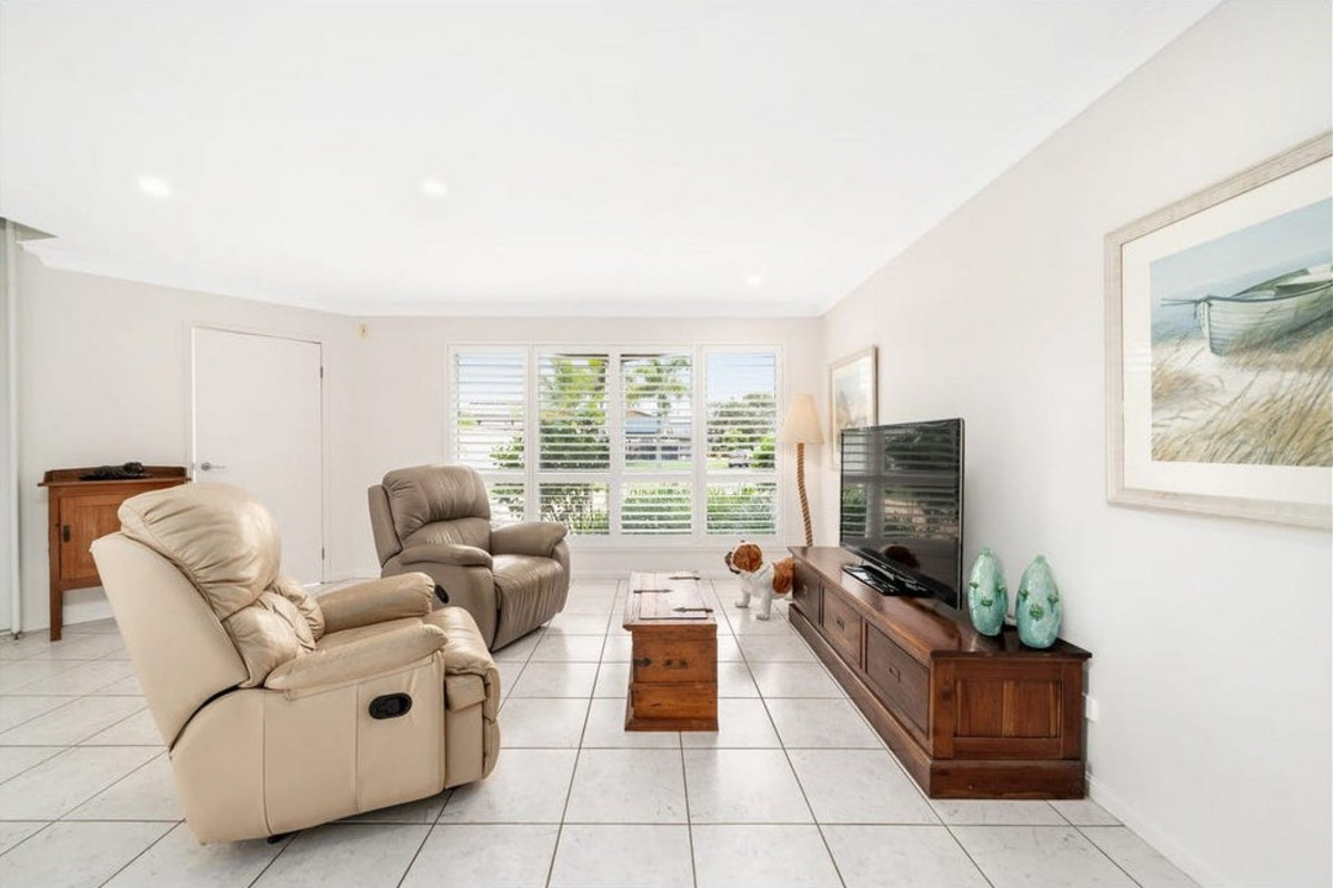 Designed for comfort and contemporary living, this residence boasts air conditioning to upstairs living area and 2 bedrooms, polished timber floors, plantation shutters, and fly screens for effortless coastal living. Enjoy open-plan living and dining that flows seamlessly to a balcony with water views, a gourmet kitchen with high-end appliances and ample storage, and an outdoor entertaining area with an inground pool—perfect for relaxed family gatherings or weekend entertaining.