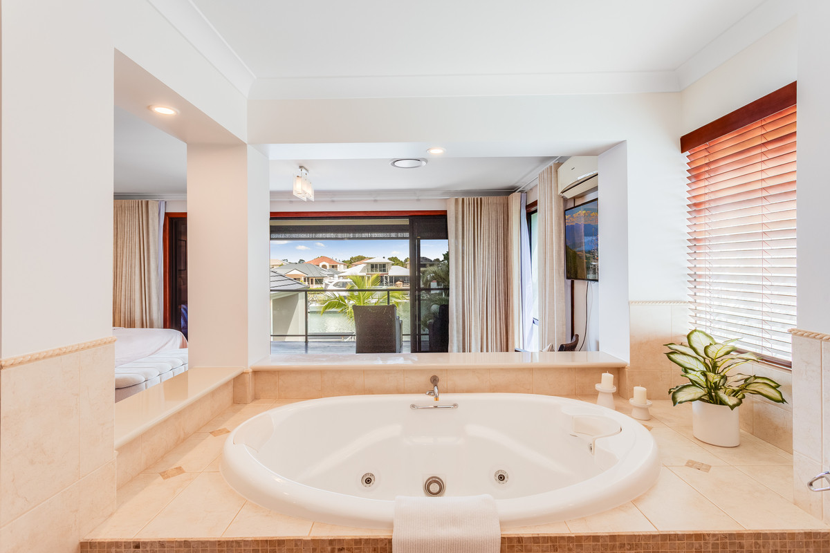 - Enormous master bedroom suite occupies the upstairs level, featuring a luxurious en-suite with spa that must be seen to be believed, along with a secluded private balcony overlooking the canal - the perfect parents retreat