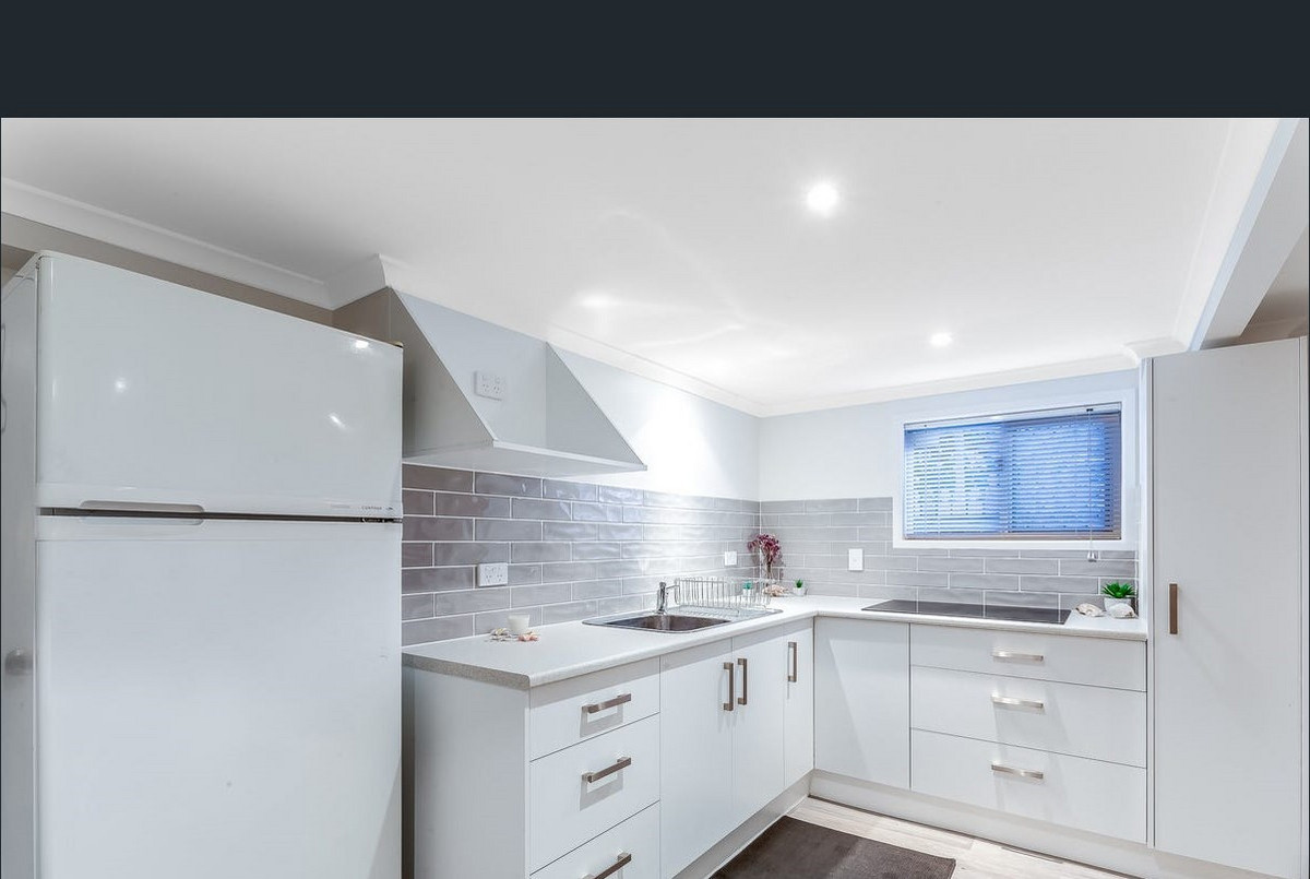 - Modern kitchen to upstairs level with dishwasher and servery window leading to the balcony